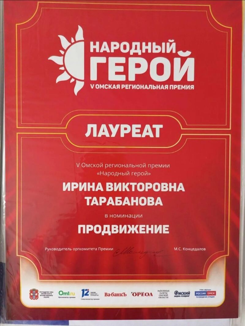 - 5 Омская региональная премия «Народный герой», лауреат премии, 2023 г.