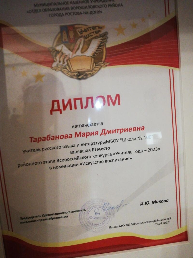 - Лауреат 3-й степени в районном этапе Всероссийского конкурса «Учитель года – 2023» в номинации «Искусство воспитания».