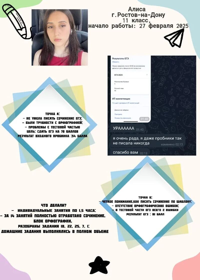 За 3 месяца дочь существенно улучшила успеваемость и знания. 7 класс. Теперь твердая пятерка. Специально не стала писать отзыв до того, как сама не увидела результат.