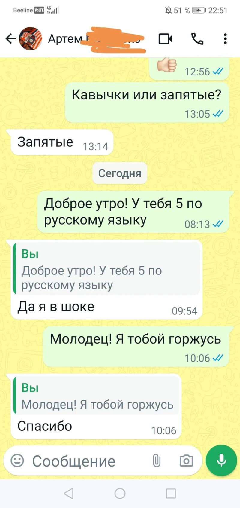 Довольны репетитором, занятия проходят интересно. Быстро нашла подход к ребенку, успеваемость улучшилась. Диана занимается онлайн, и занятия не отличаются от очных. Хотя мы и опасались, но дочь занимается с удовольствием