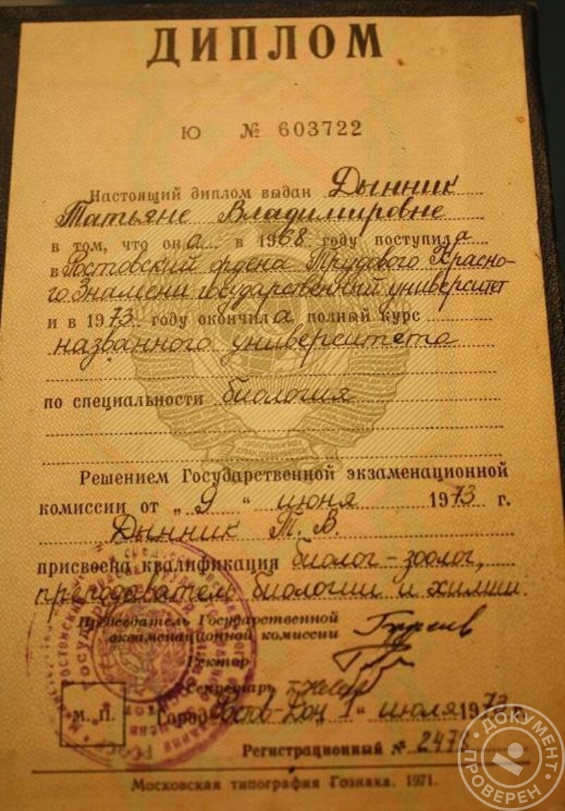 - Ростовский государственный университет, кафедра биологии, специальность – биология, 1968–1973 гг.