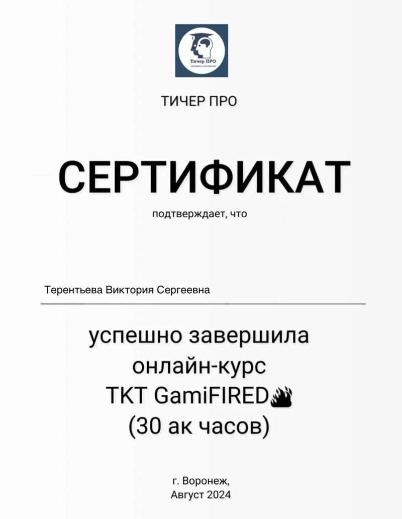 ► Связаться с Терентьевой Викторией Сергеевной можно за пару минут. Нажмите на кнопку «Связаться с репетитором» и заполните короткую форму.