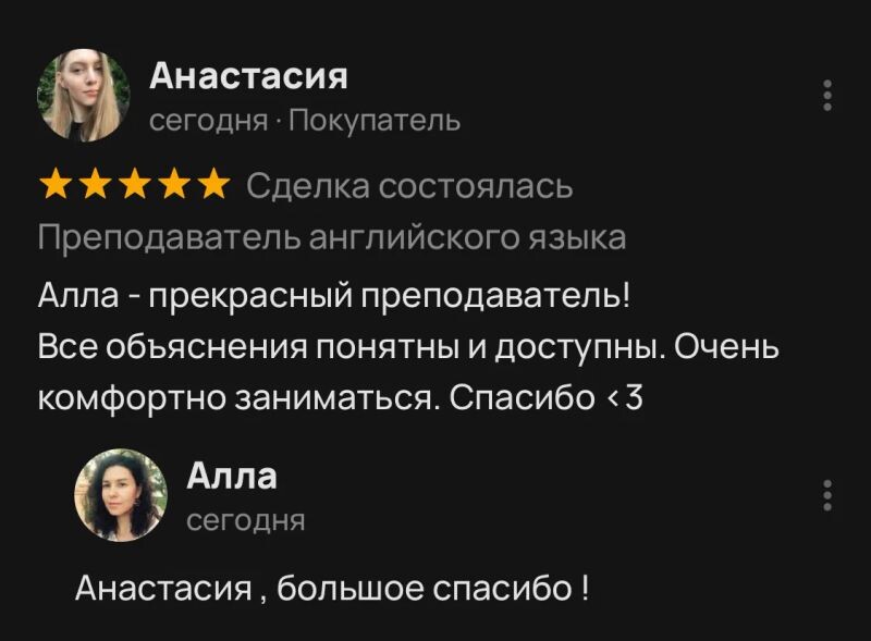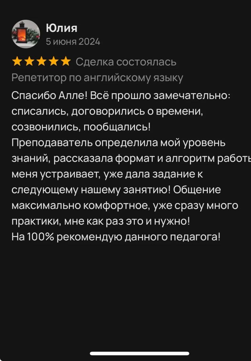 ► Связаться с Тирацуян Аллой Георгиевной можно за пару минут. Нажмите на кнопку «Связаться с репетитором» и заполните короткую форму.