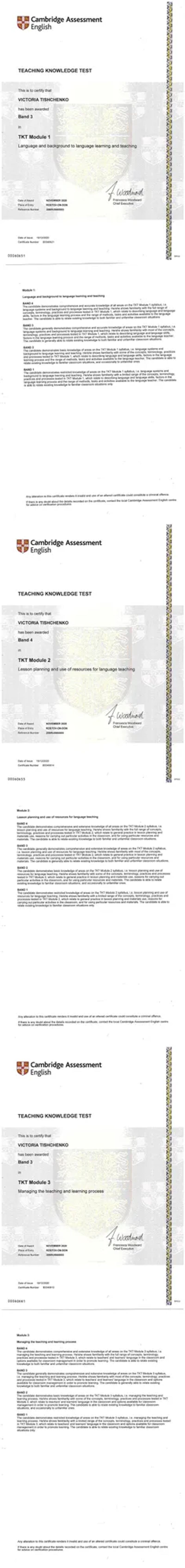 - Teaching Knowledge Test, module 1, 2, 3, 2020 г.