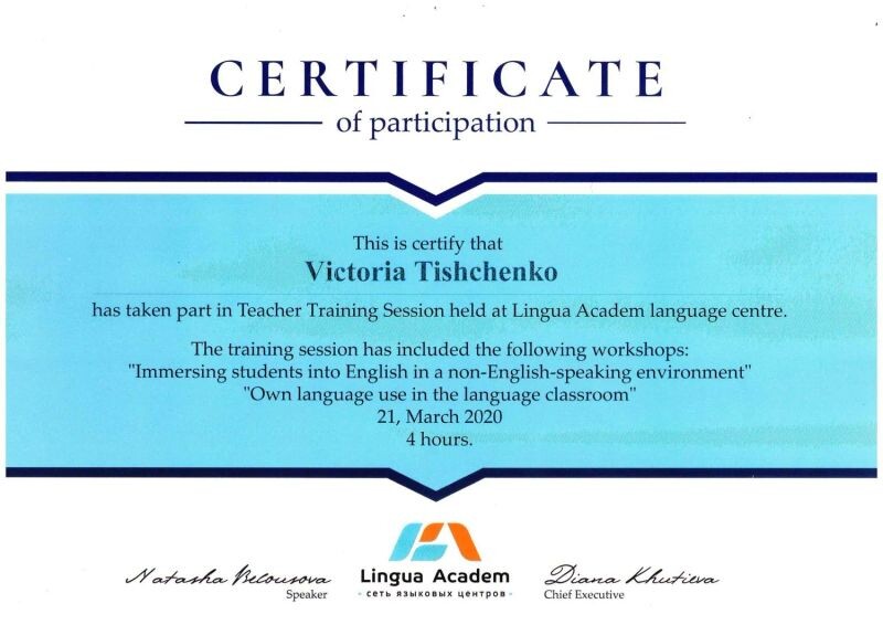 - Lingua academ language centre, teaching training session, 2020 г.