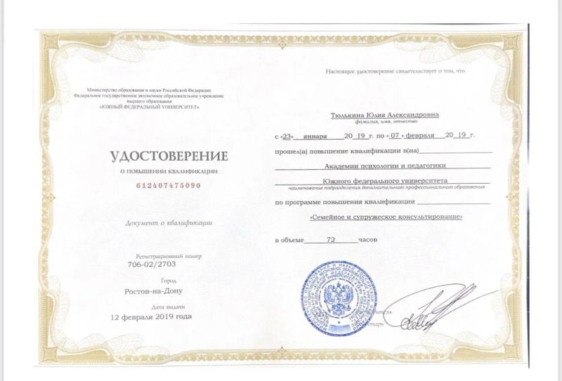 - ЮФУ, семейное и супружеское консультирование, 2019 г.