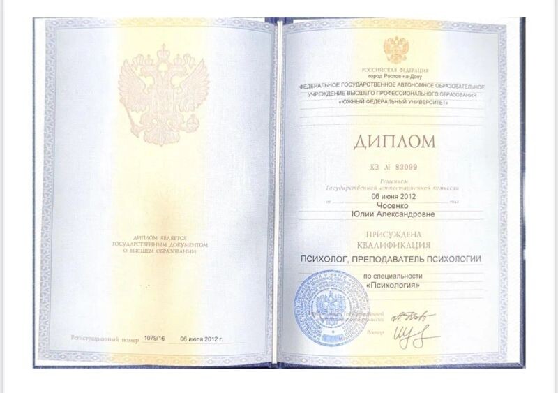 - ЮФУ, психолог, преподаватель психологии, 2007–2012 гг.