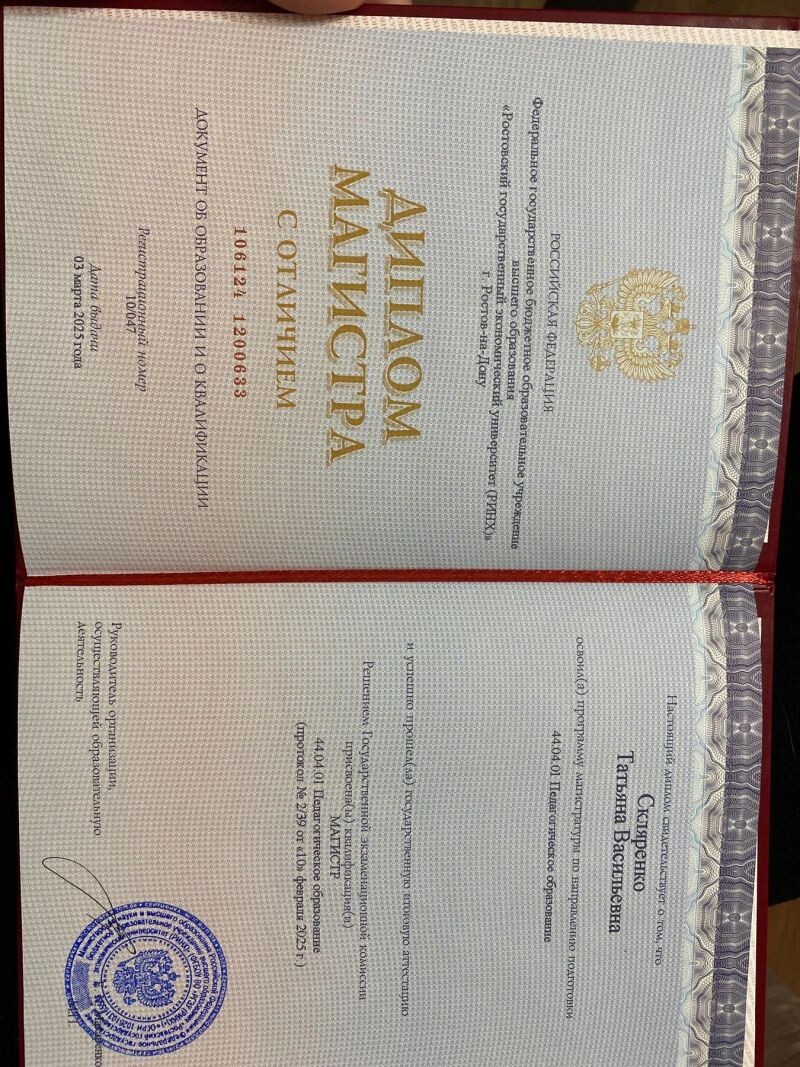 - Ростовский государственный экономический университет, педагогическое образование, магистр, 2023–2025 гг.