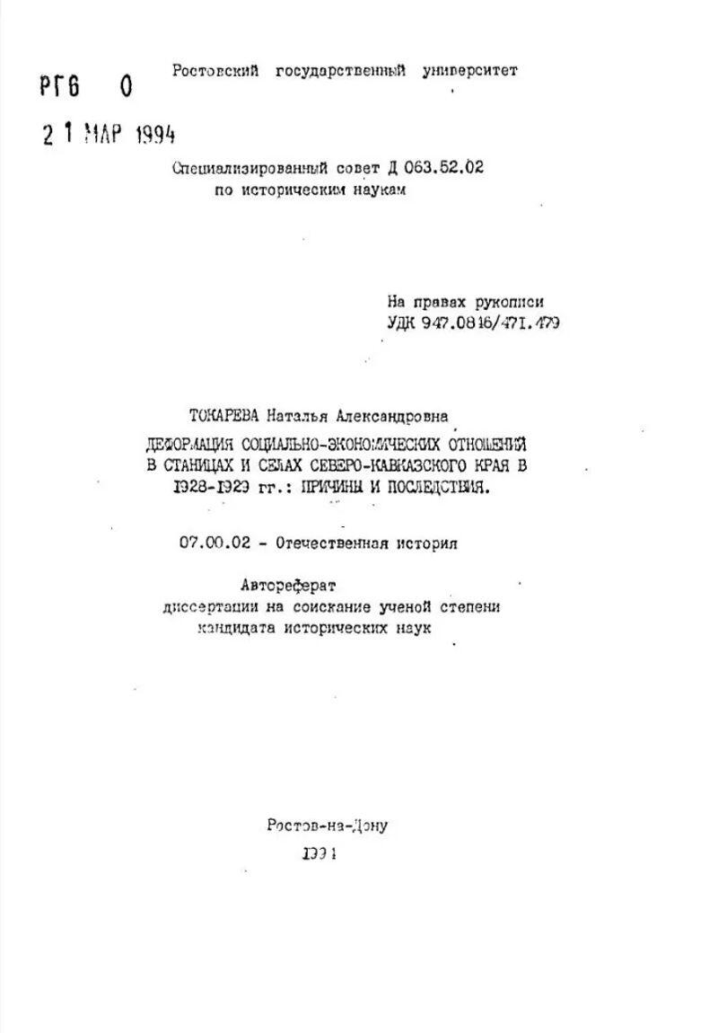 - Ростовский государственный университет (РГУ), исторический факультет, аспирантура, 1993 г.