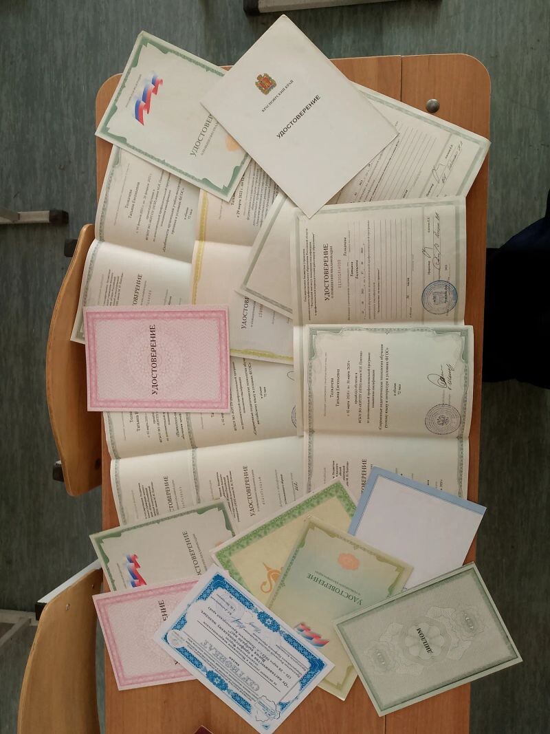 - Красноярский институт повышения квалификации, обучение по программе «Современный урок русского языка в контексте ФГОС образовательных организаций» (2015 г.).