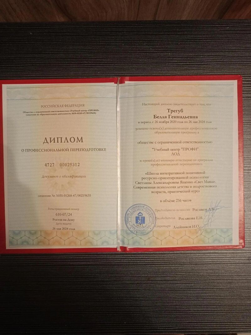 ► Трегуб Белла Геннадьевна принимает территориально: г. Ростов-на-Дону, а также проводит онлайн-консультации.