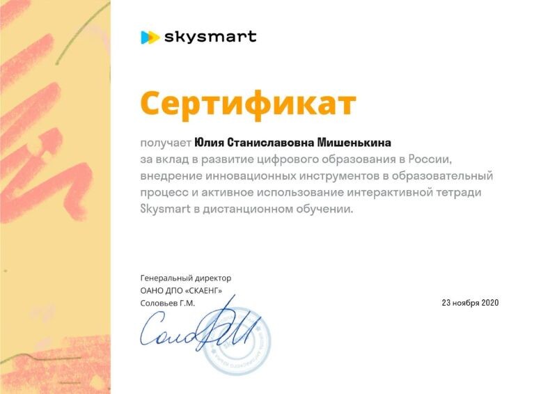 - Сертификат за вклад в цифровое образование в России, 2020 г.