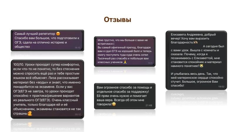 ► Связаться с Тушевой Елизаветой Андреевной можно за пару минут. Нажмите на кнопку «Связаться с репетитором» и заполните короткую форму.