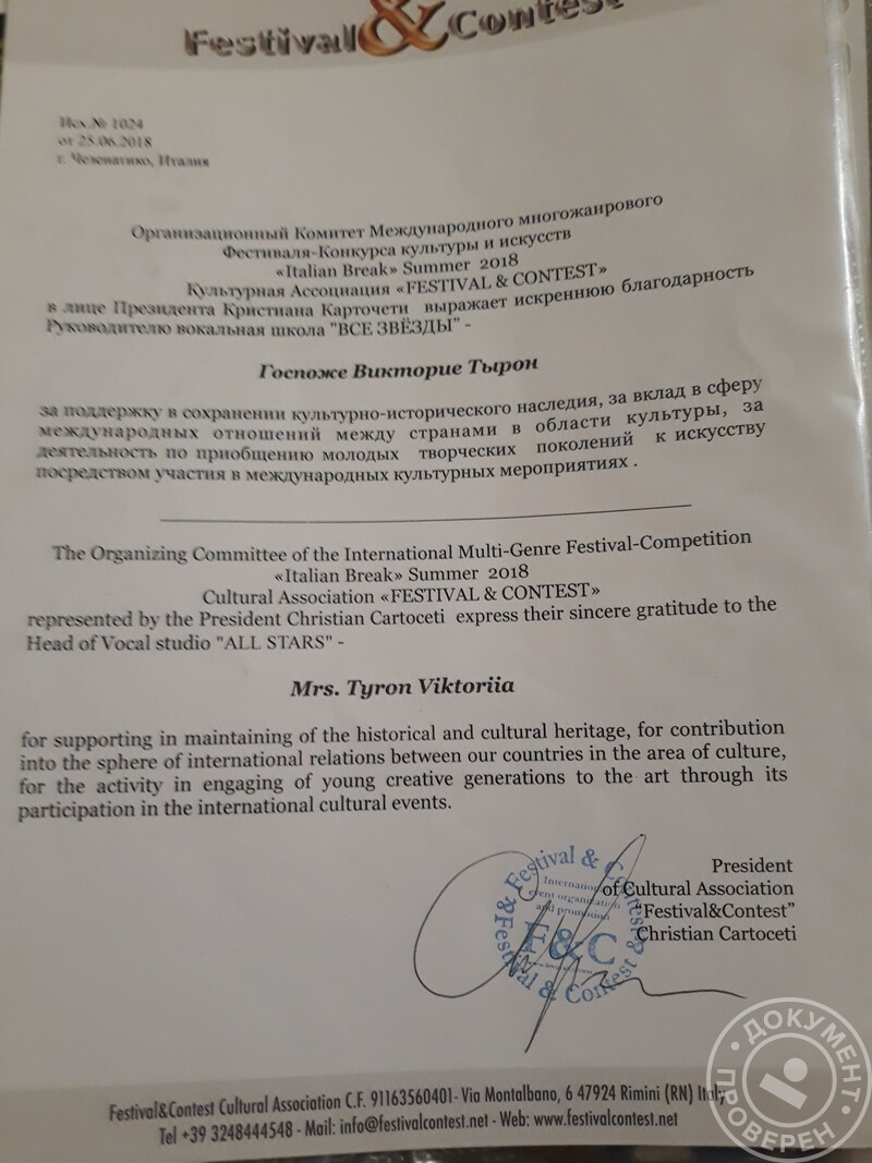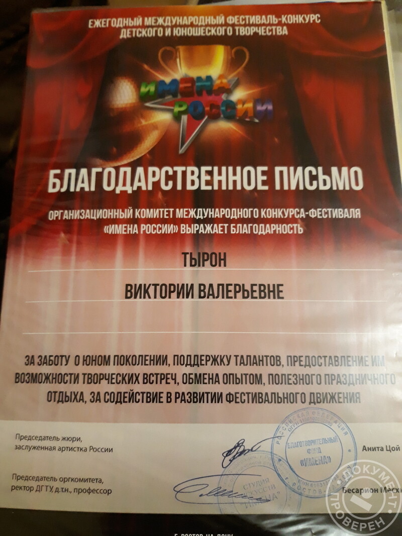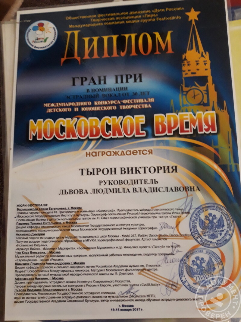 - Победитель международного конкурса-фестиваля «Колыбель России» в номинации «Лучший преподаватель», 2011 г.