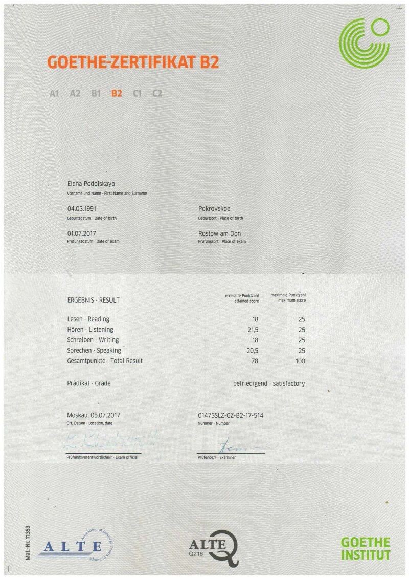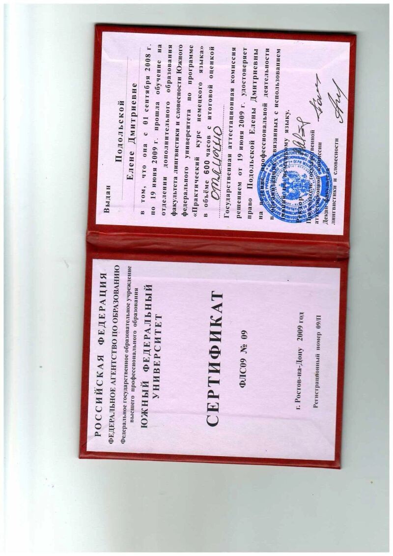- Южный федеральный университет, программа «Практический курс немецкого языка», 2008–2009 гг.