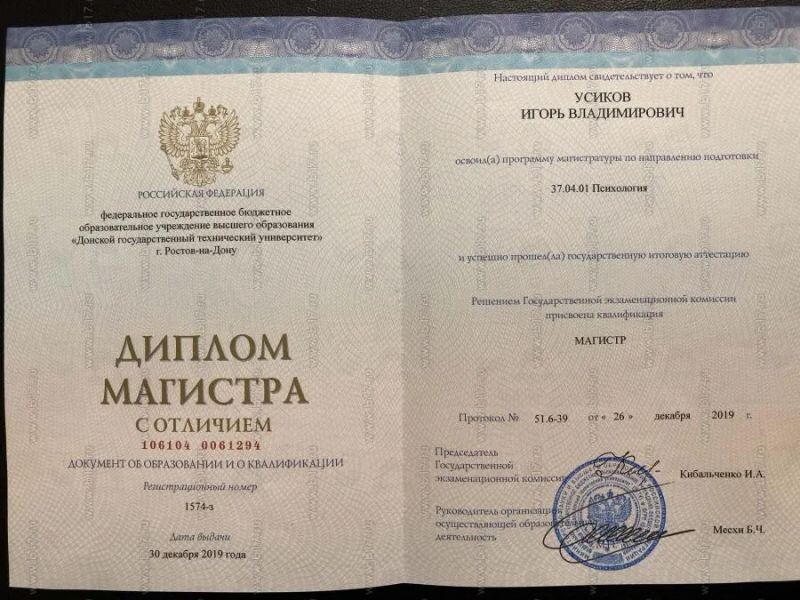 - ДГТУ, психотерапия и психологическое консультирование, 2017–2019 гг.