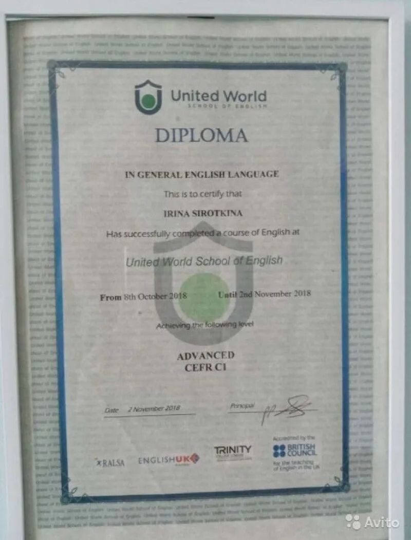 - Школа в Англии (Общий английский), United World School of English (с 2018 г.).