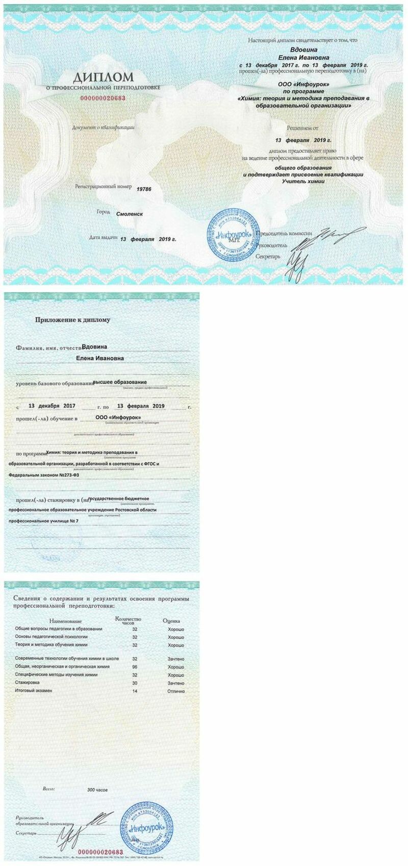 - Переподготовка предмет химия: "Химия теория и методика преподавания" Инфоурок, 2017 г.