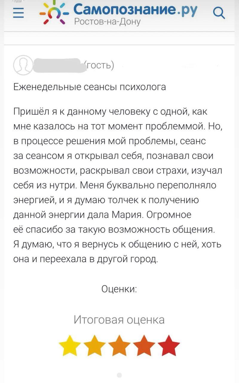 ► Венгер-Бурлаченко Мария Павловна принимает территориально: г. Ростов-на-Дону, а также проводит онлайн-консультации.