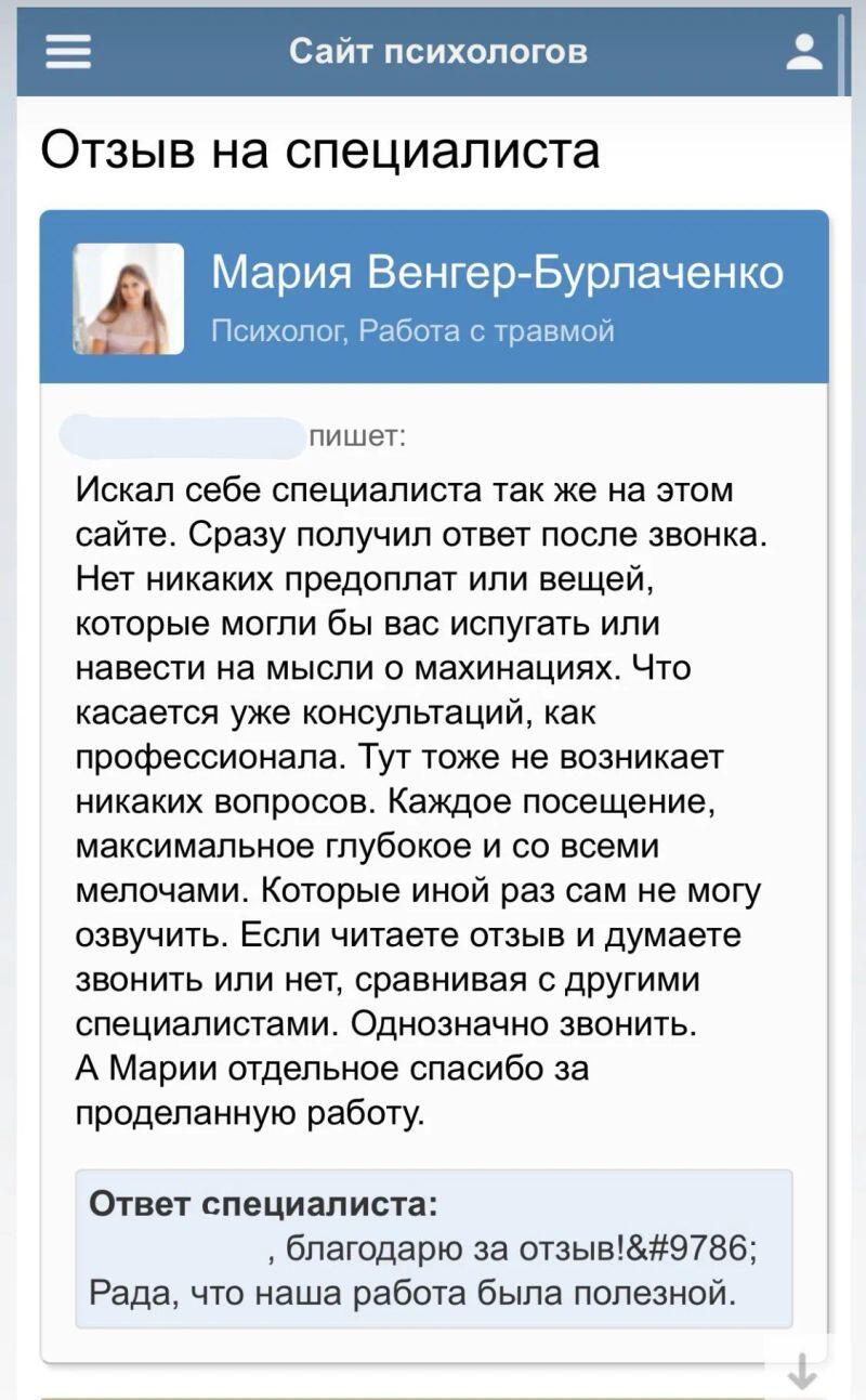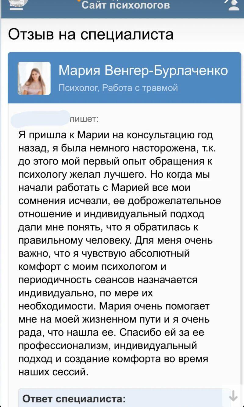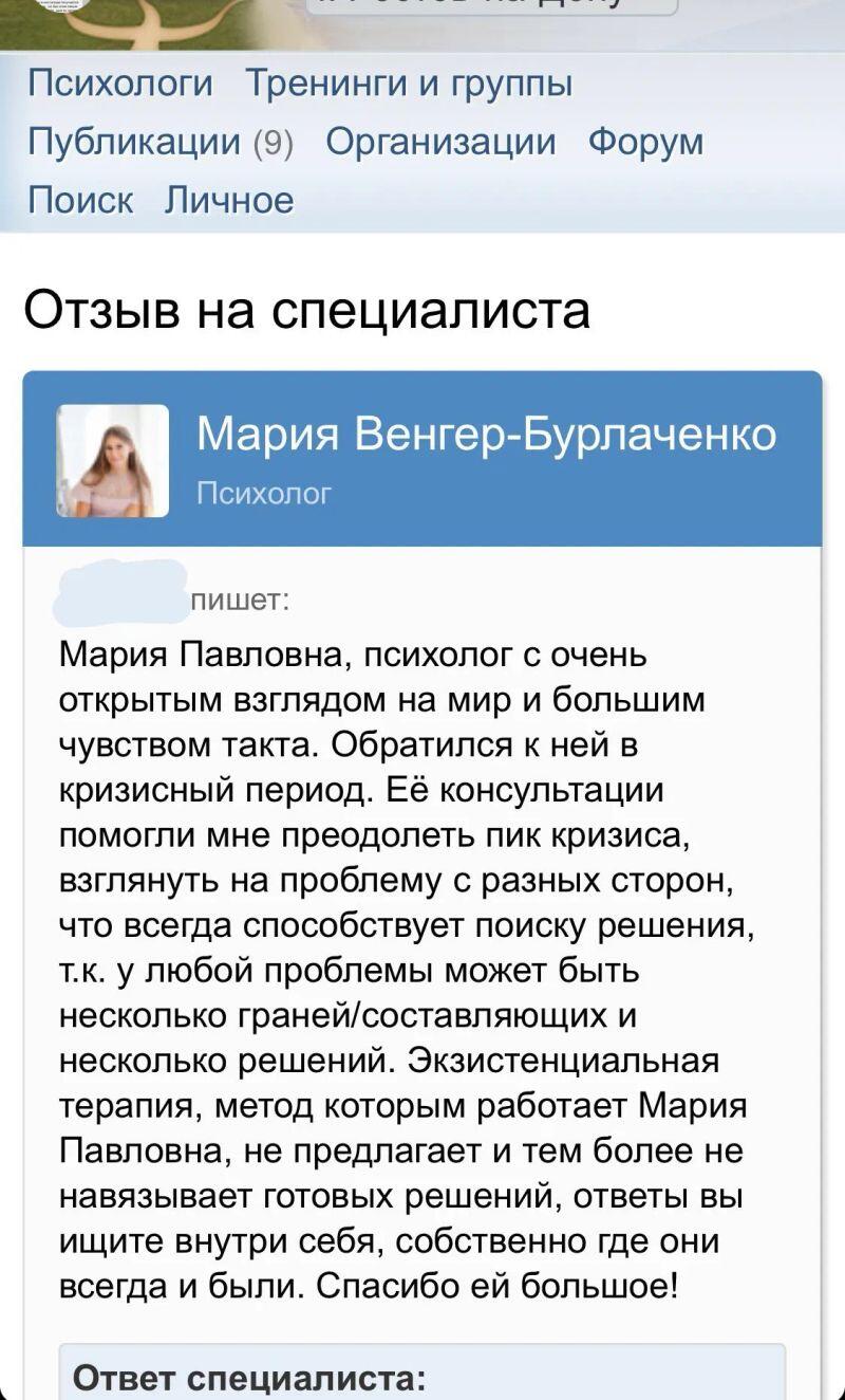 Отзывы о Венгер-Бурлаченко Марии Павловне