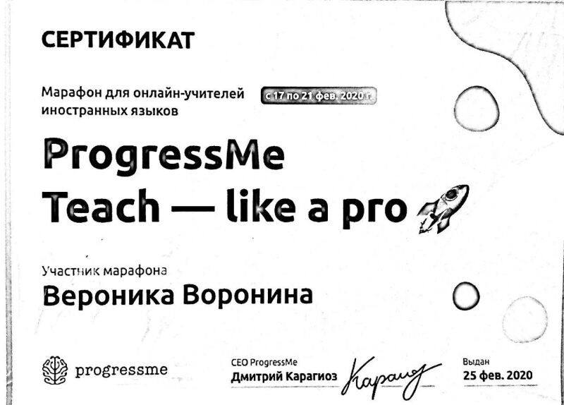 - ProgressMe, марафон для онлайн-учителей иностранных языков Teach like a pro, 2020 г.