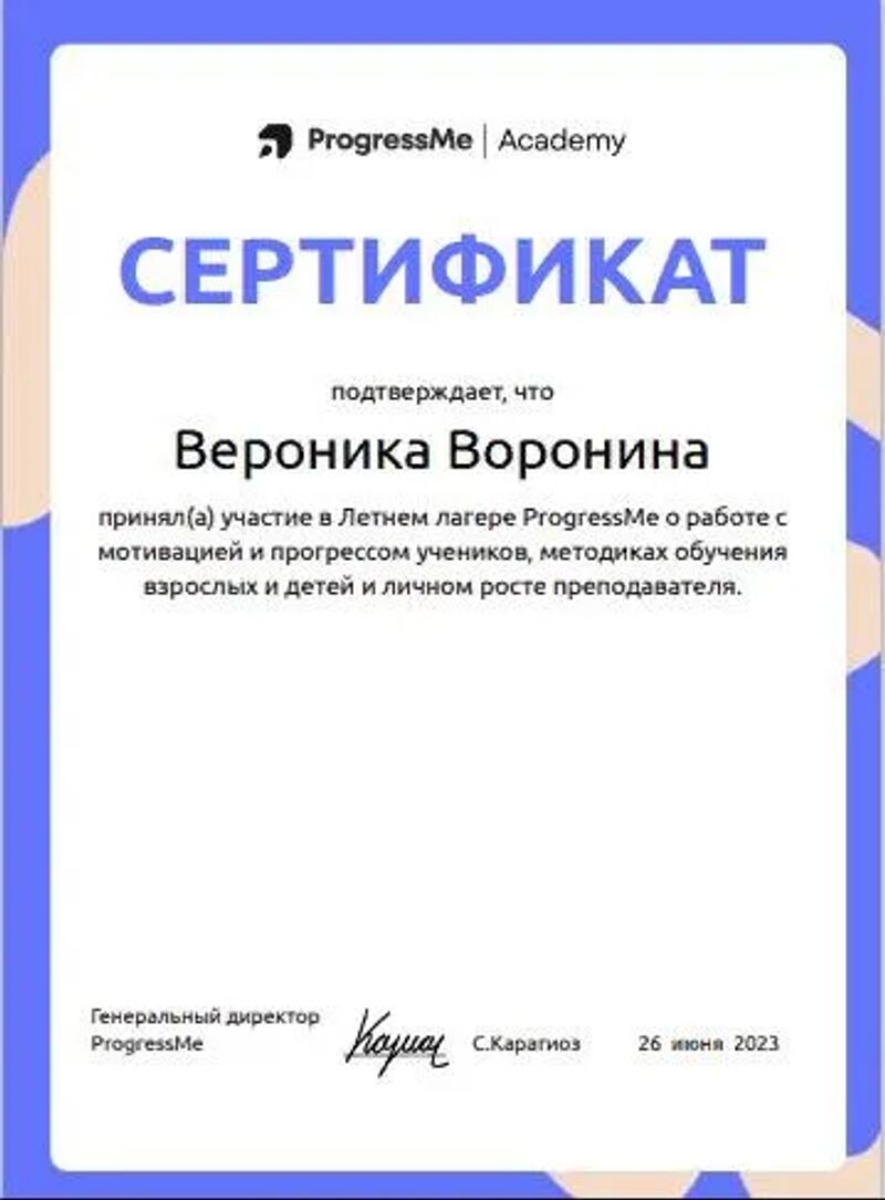 - Progressme academy, участие в Летнем лагере Progressme, 2023 г.