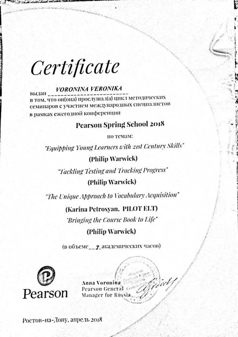 - Pearson, участие в конференции Pearson Spring School 2018.