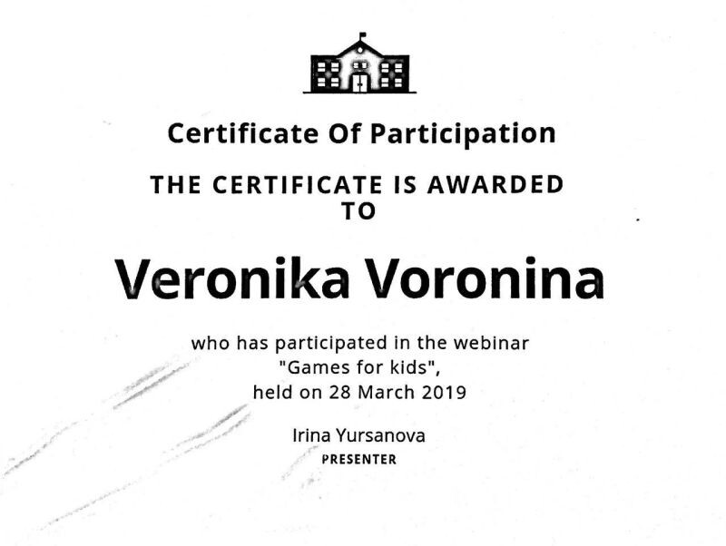 - Вебинар Ирины Юрсановой Games for kids, 2019 г.