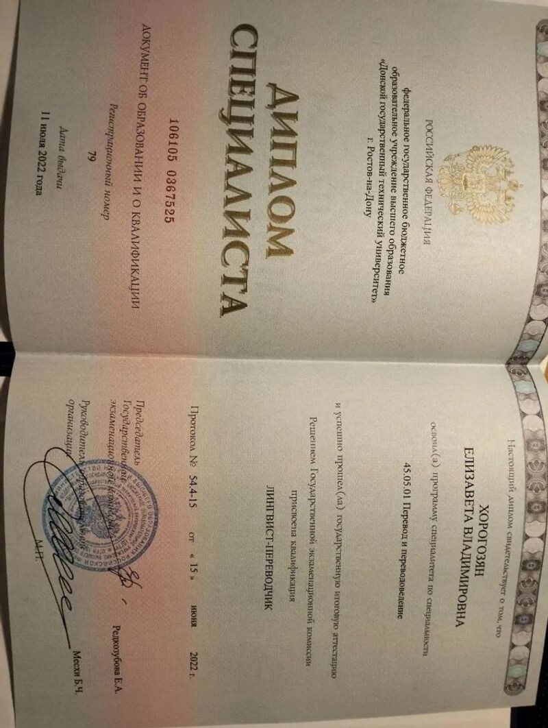 - ДГТУ, прикладная лингвистика, программа «перевод и переводоведение», 2017–2022 гг.
