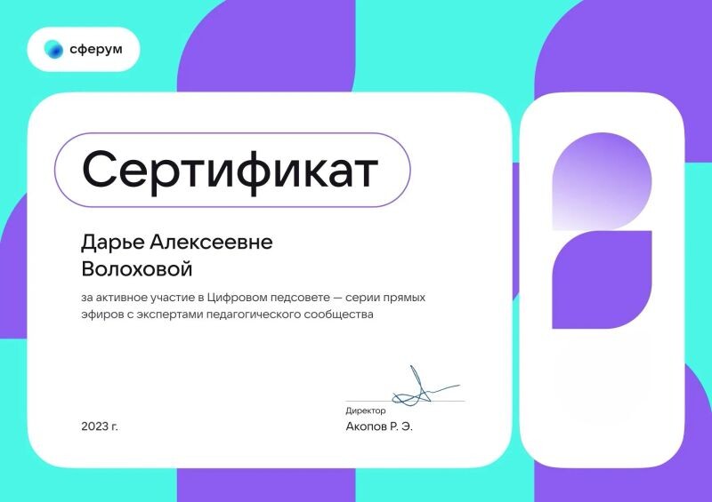 - Сферум, участие в цифровом педсовете, 2023 г.