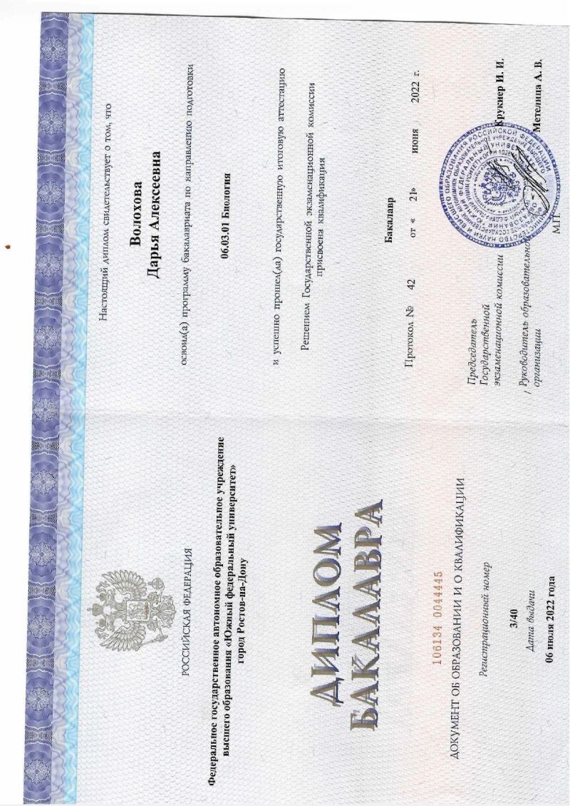 - ЮФУ, биология, бакалавр, 2018–2022 гг.