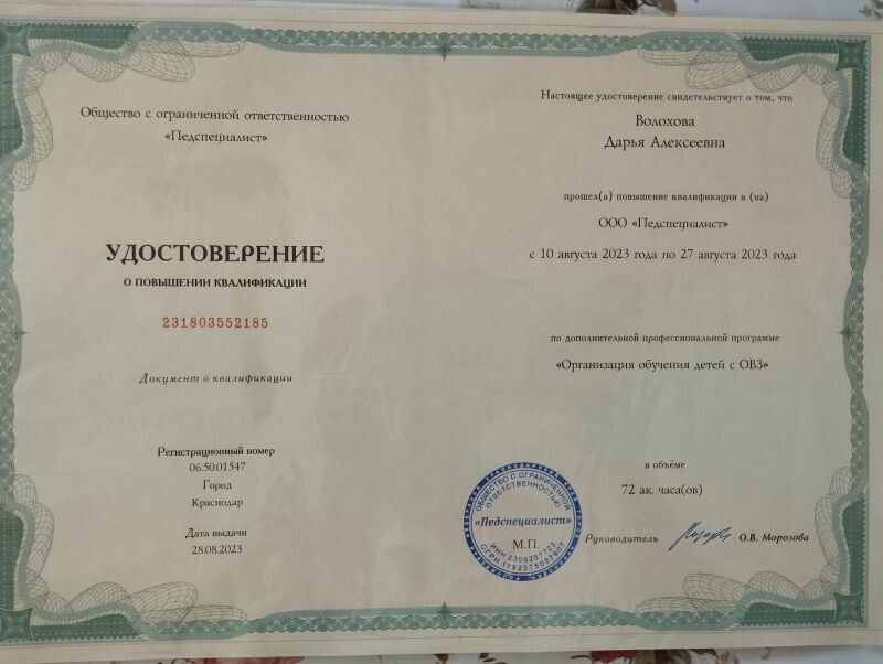 - ООО «Педспециалист», организация обучения детей с ОВЗ, 2023 г.