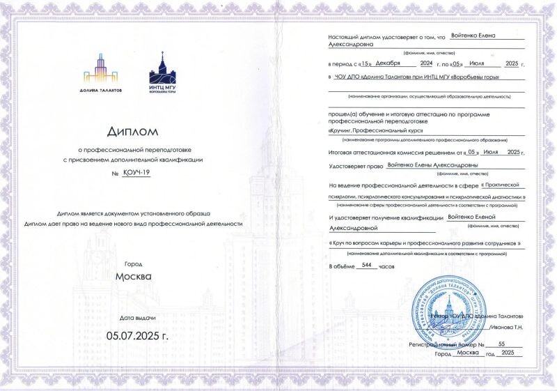 - ИНТЦ МГУ "Воробьевы горы". Коуч, 2024–2025 гг.