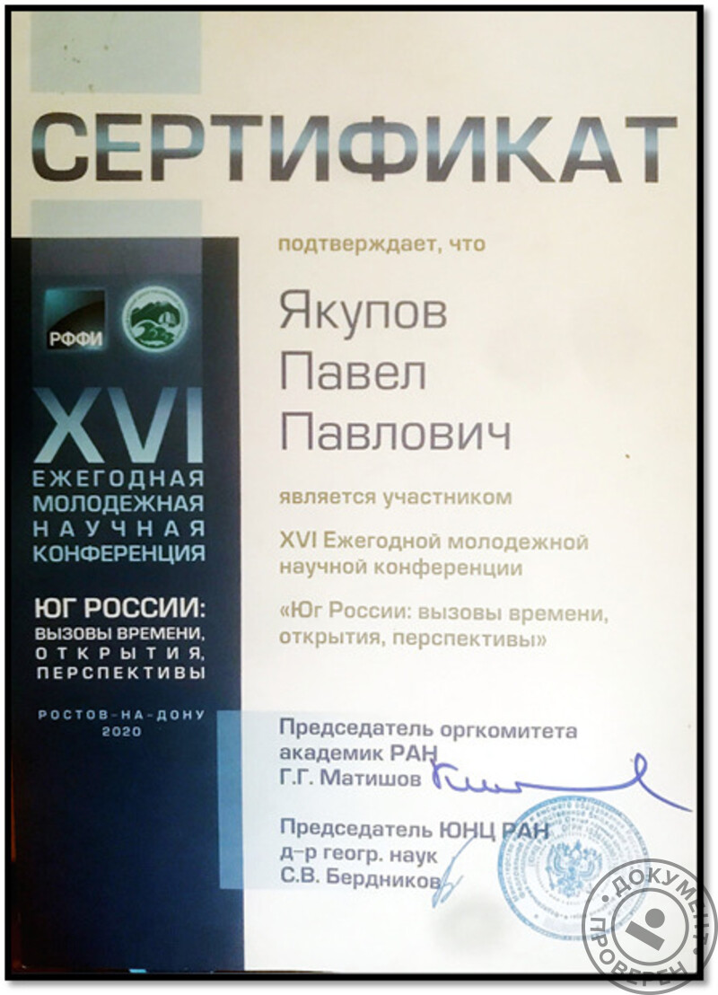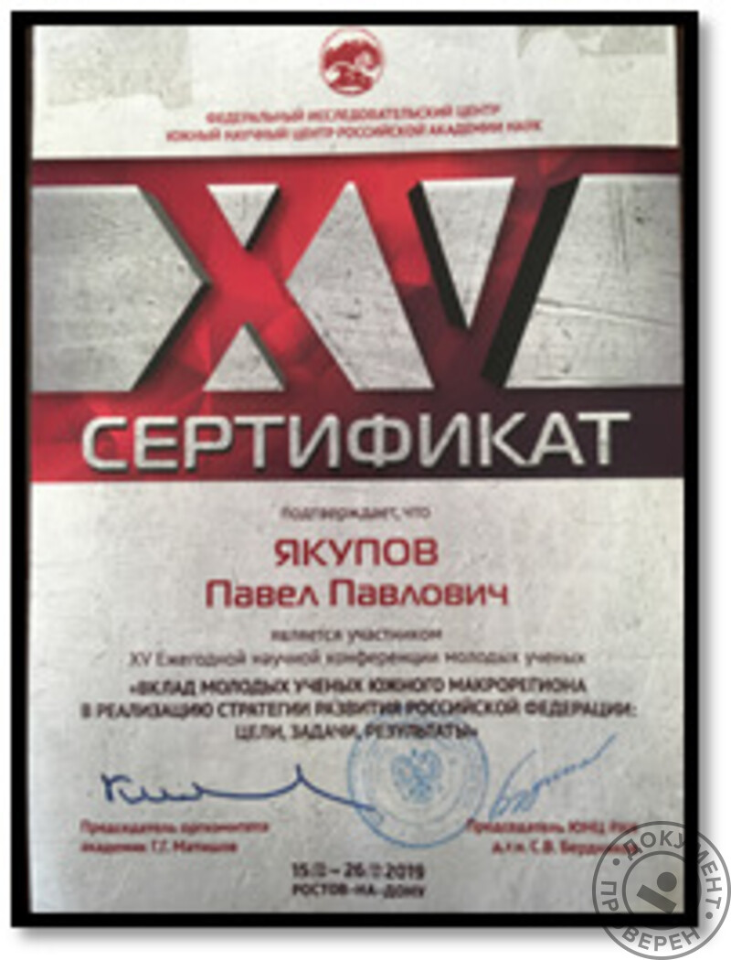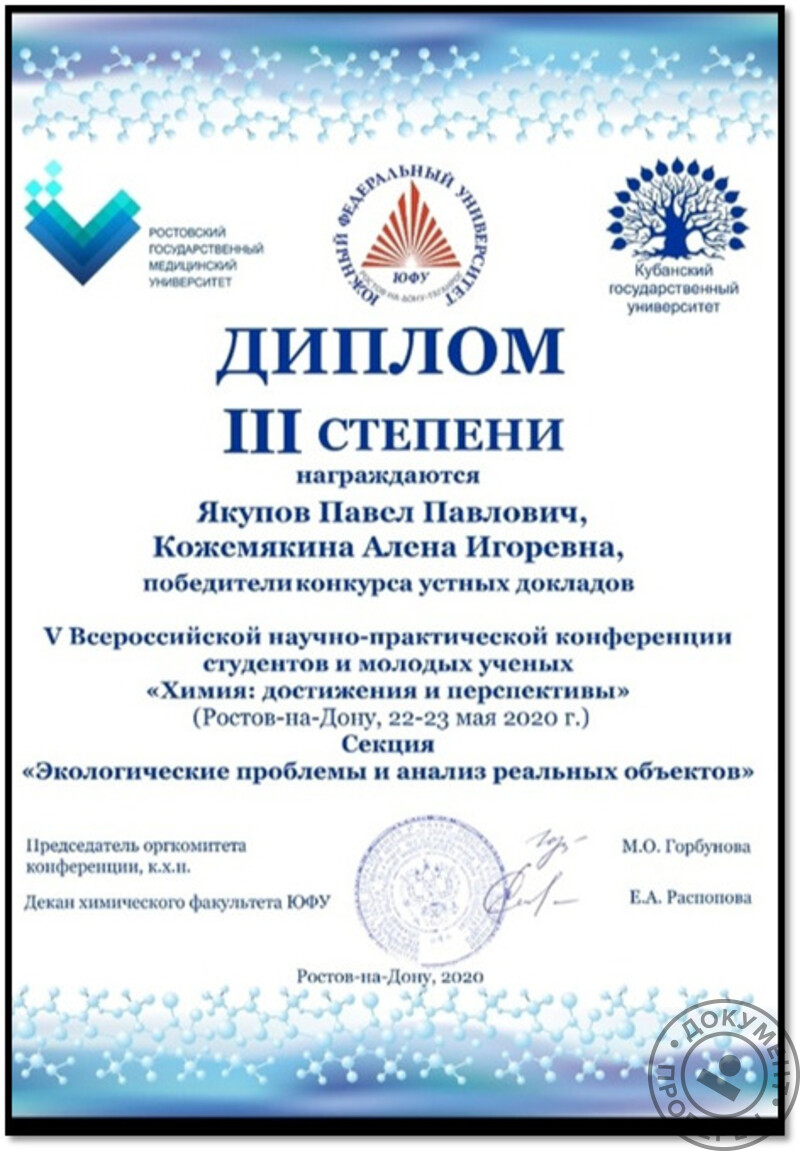 - Южный федеральный университет, химический факультет (с 2018 г.).