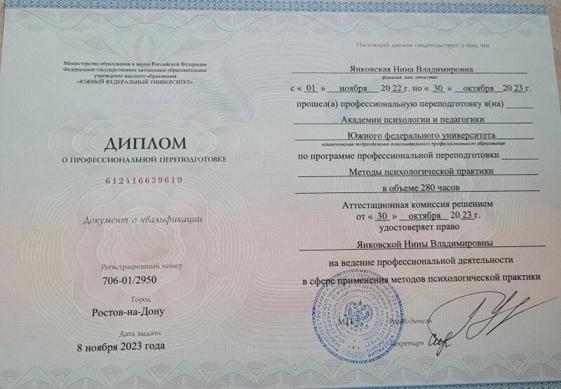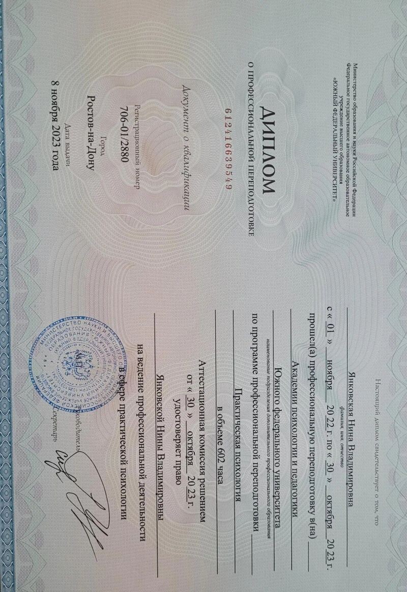 - Южный федеральный университет, практическая психология, 2022–2023 гг.