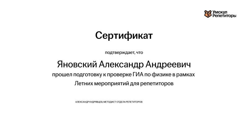 ► Связаться с Яновским Алексадром Андреевичем можно за пару минут. Нажмите на кнопку «Связаться с репетитором» и заполните короткую форму.