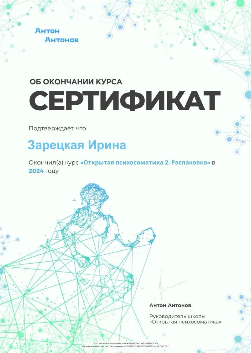 - Школа «Открытая психосоматика». Курс «Открытая психосоматика 2. Распаковка», 2024 г.