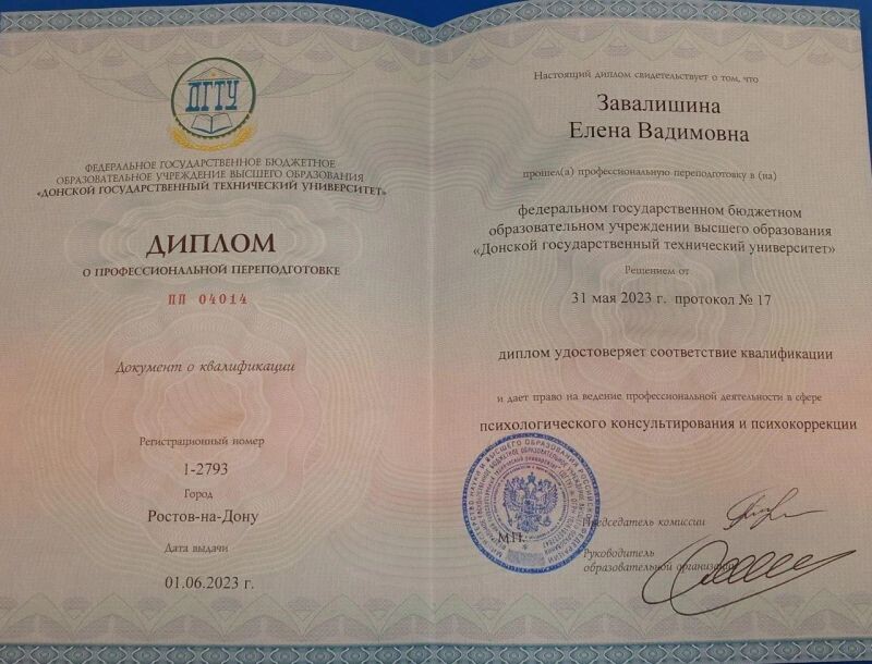 - Донской государственный технический университет, психологическое консультирование и психокоррекция, 2022–2023 гг.