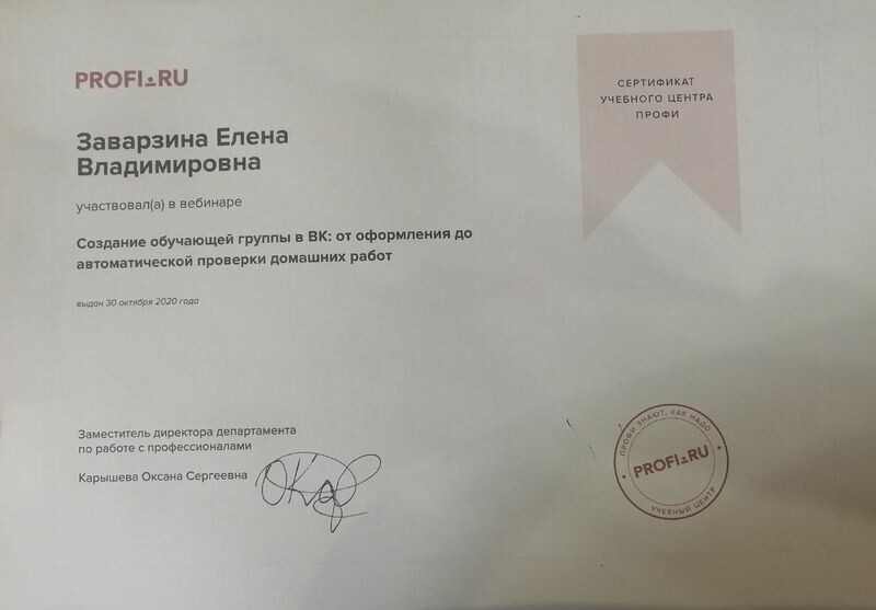 ► Связаться с Заварзиной Еленой Владимировной можно за пару минут. Нажмите на кнопку «Связаться с репетитором» и заполните короткую форму.