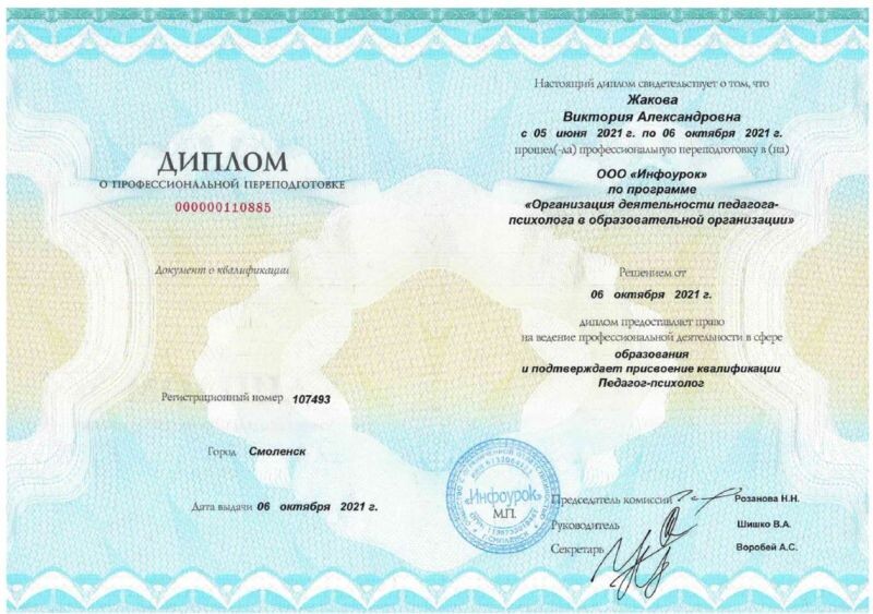 - ООО «Инфоурок», организация деятельности педагога-психолога в образовательной организации, 2021 г.
