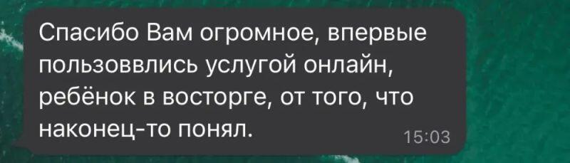 Методика преподавания великолепна, ребенок с радостью осваивает материал. Преподаватель очень пунктуален и ответственен. Пока рано говорить о результатах, ведь прошло всего два урока, но я уверена, что они будут соответствовать нашим ожиданиям и помогут успешно сдать ОГЭ. Рекомендую преподавателя, мы продолжаем занятия.