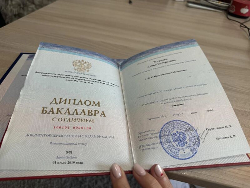 - Южный федеральный университет, педагогическое образование, бакалавр, 2014–2019 гг.