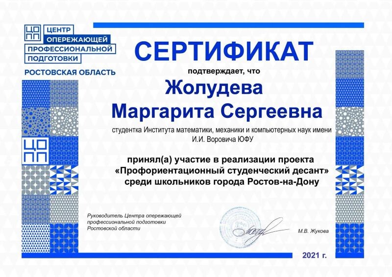 ► Жолудева Маргарита Сергеевна проводит занятия территориально: Ворошиловский, а также дистанционно в онлайн-формате.