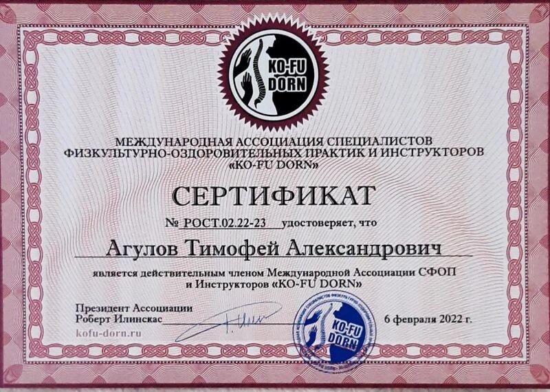 - Международная ассоциация специалистов физкультурно-оздоровительных практик и инструкторов «KO-FU DORN», 2022 г.
