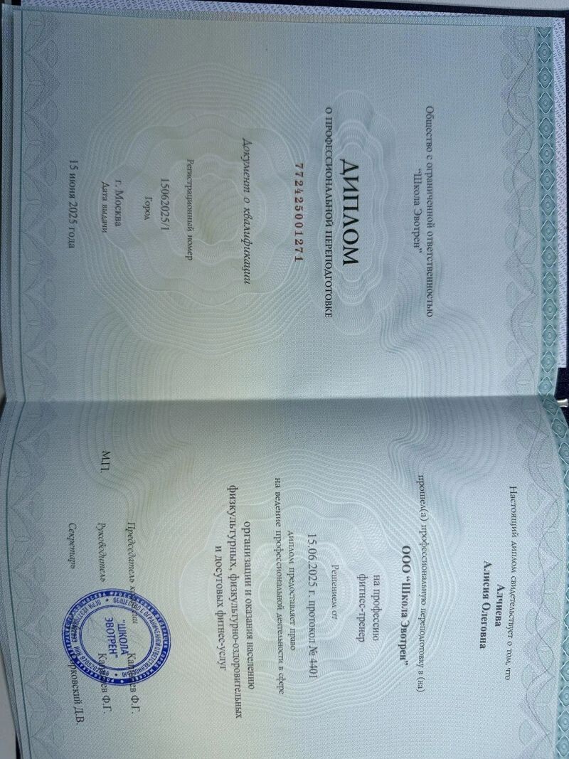 - ООО «Школа Эвотрен», фитнес-тренер, 2025 г.