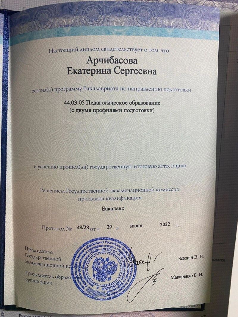 Отзывы о Арчибасовой Екатерине Сергеевне