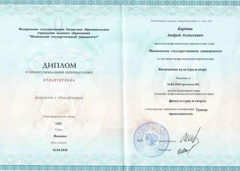 - Ивановский государственный университет, физическая культура и спорт, 2018 г.