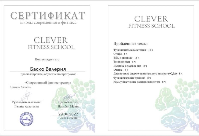 - Школа современного фитнеса, современный фитнес-тренер, 2022 г.