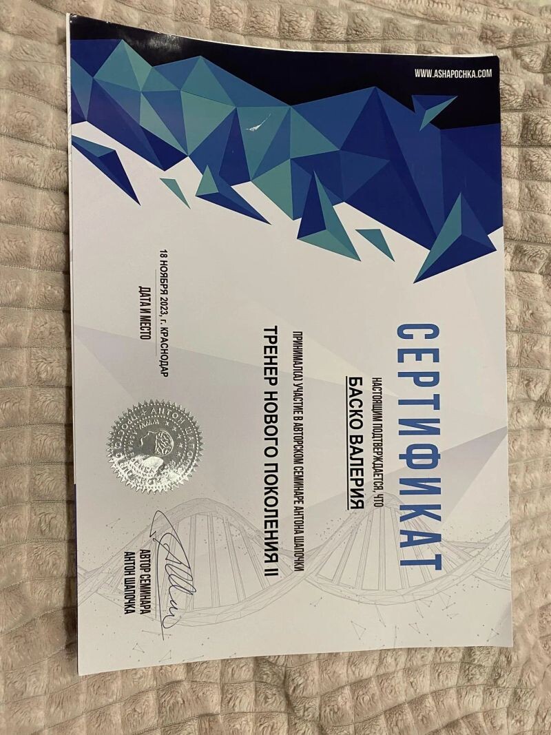 - Курс Антона Шапочки «Тренер нового поколения», 2023 г.