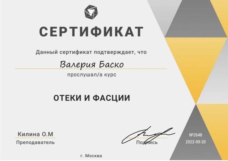 - Авторский курс «Отёки и фасции», 2022 г.
